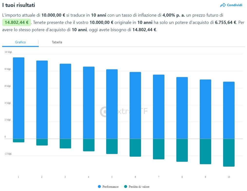 A noi sembrerà che non stiamo rischiando, ma in effetti, il potere dei nostri soldi diminuisce nel tempo!